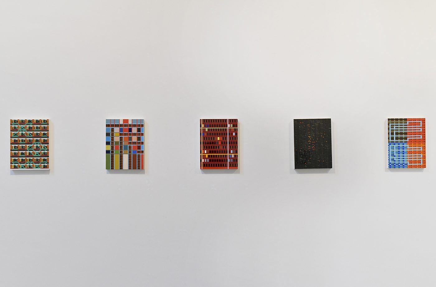 Die beiden künstlerischen Ausdrucksformen Film und Malerei treiben Matthias Bosshart (*1950, lebt und arbeitet in Zürich) seit Langem um. Ausgebildet sowohl in der bildenden Kunst – er hat in den 1970er-Jahren an der damaligen Basler Kunstgewerbeschule unter anderem beim abstrakten Künstler Franz Fedier Malerei studiert – als auch im Bereich des Experimentalfilms, verbindet Matthias Bosshart seit den frühen 1990er-Jahren die beiden Medien in formaler und konzeptioneller Hinsicht. Auf verschieden grossen Verbundplatten schafft er mit Lackfarbe und aufgeklebten 16-mm- oder 35-mm-Filmbändern, die er zumeist auf Flohmärkten oder in den letzten noch bestehenden Filmlabors findet, mal streng geometrische, mal freier wirkende Bildkompositionen. An der Werkschau zeigt Matthias Bosshart fünf neuere und für einmal kleinformatige Werke, die teilweise das Resultat von Überarbeitungen älterer Bildtafeln sind. Jaguar mit vier Augen (1996/2016) und Nach Kasimir Malevitch: „Mann in suprematistischer Landschaft“ (2004/20016) nennt der Künstler diese Werke, bei denen wir trotz dem Moment der Verfremdung an Erzählstränge denken müssen. Zwar sind die Geschichten, die die Filme einst erzählten, kaum mehr zu entziffern und mitunter von Farbschichten überdeckt, aber dennoch ist den Arbeiten ein narratives Potenzial eigen. Wir folgen mit unseren Blicken nicht nur den Filmstreifen, sondern auch den in den Bildkompositionen dominanten Linien – vielleicht auf der Suche nach der Geschichte des Jaguars mit den vier Augen, der uns plötzlich unerwartet anblickt.