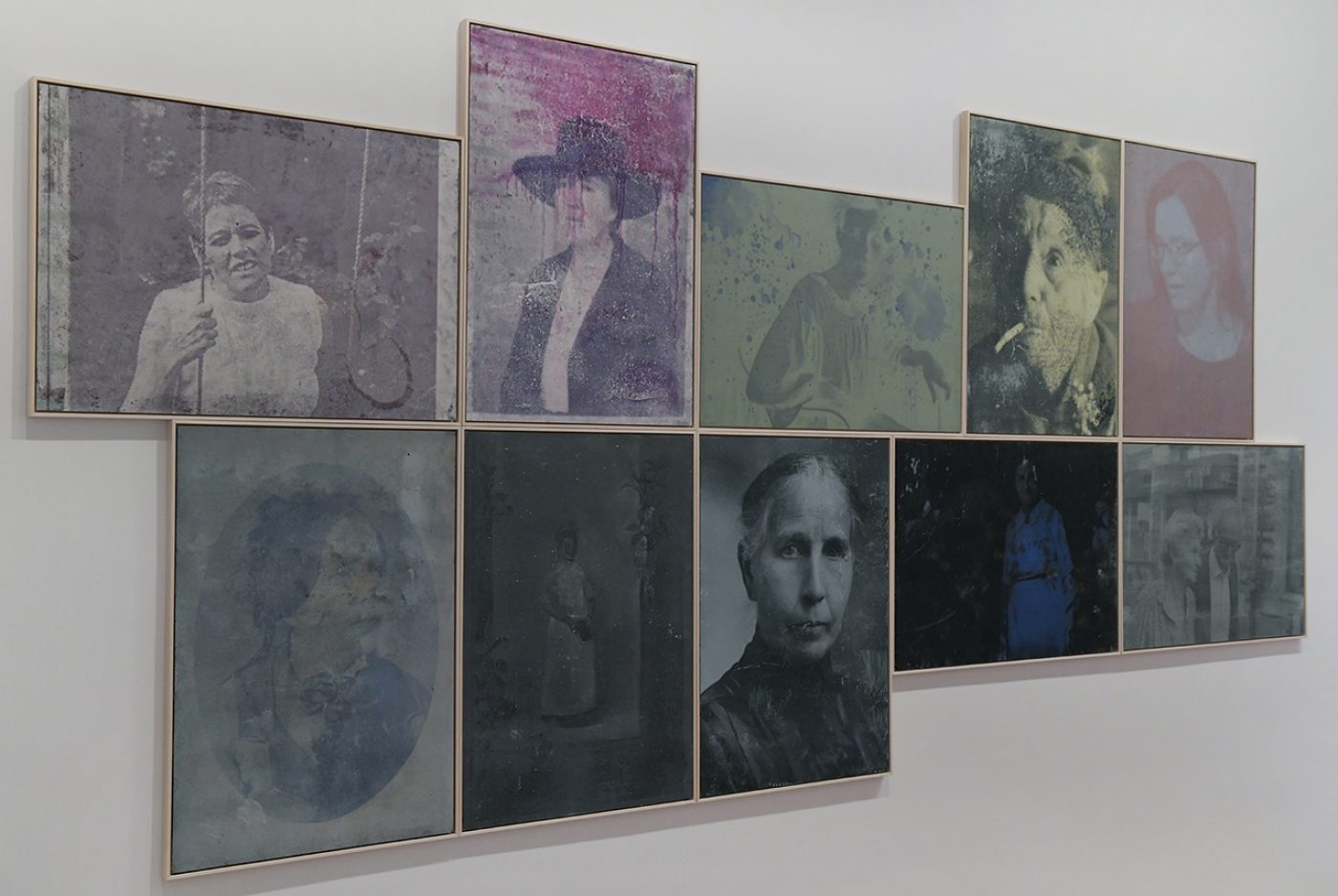 Judit Villiger (*1966, lebt und arbeitet in Steckborn und Zürich) setzt sich seit einigen Jahren mit der Bedeutung von kollektiven Bildgedächtnissen sowie mit Bildwirkung und Bildmacht auseinander. Welche Bilder hüten und bewahren wir? Welche Spuren hinterlassen Menschen in den Bildgedächtnissen und -archiven? Und: Gibt es künstlerische Strategien des Umdeutens oder Umordnens, die auf das Erinnern und Vergessen von Bildern (und der Menschen, von denen sie erzählen) Einfluss nehmen können? Aus ihren künstlerischen und wissenschaftlichen Recherchen entwickelt Judit Villiger Werkkomplexe wie die an der Werkschau präsentierte Arbeit Aus Thurgauer Archiven. Dabei legt sie den Fokus auf ihre „eigene Bild-Umgebung“, wie sie sagt, und spürt den Bildern von Personen nach, die in der Ostschweiz aktiv waren. Ausgehend von einer feministischen Perspektive sind es dabei insbesondere die (oft vergessenen) Abbildungen von Frauen, die die Künstlerin verwendet. Anhand dieser in Archiven und anderswo aufgespürten Fotografien entwickelt Judit Villiger Tafelbilder, für die sie die reproduzierte und vergrösserte Abbildung mit verschiedenen Techniken verfremdet. Dabei thematisieren die Bearbeitung sowie die Anordnung als Bildgruppe – und in diesem Sinn die Kontextualisierung – die Verschiebungen in der Lesbarkeit und die Macht der Bilder. Das Porträt einer anonymen Bäuerin im Uesslinger Rebberg zur Zeit des Zweiten Weltkrieges oder von Margrit Roesch (1880–1969), Künstlerin, Ehefrau des Künstlers Carl Roesch und Mitarbeiterin in dessen Atelier, verweisen ebenso darauf wie das Bild der aus dem Thurgau stammenden Künstlerin Helen Dahm (1878–1968).