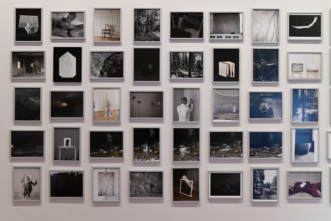 Herbert Weber (*1975, lebt und arbeitet in St. Gallen) hat an der Zürcher Hochschule der Künste (ZHdK) Fotografie studiert. Er interessiert sich seit jeher nicht nur für die eigentliche künstlerische Bildproduktion, sondern auch für die Umstände und Kontexte, in denen künstlerische Arbeit passiert – oder eben nicht passiert. Oft augenzwinkernd und mit einer Prise Humor befragt er seine Rolle als Autor und als Fotograf, der mal glücklich und erfolgreich, mal hadernd und ideenlos nach Motiven, nach Bildern sucht. Mit der an der Werkschau gezeigten Arbeit Landschaftsfotografie als eigentliches Ziel(2019) verhandelt Herbert Weber genau dieses Dilemma. Die Arbeit besteht aus 74 Fotografien, die der Künstler in den letzten 14 Jahren gemacht hat. Die Bestimmung dieser Bilder wird im Werktitel festgelegt: Landschaftsfotografie soll es sein. Ein überaus klassisches Genre also, das in der Landschaftsmalerei seinen tradierten Vorläufer hat und zugleich in der regen Bildproduktion der Gegenwart Instagramkanäle und anderes flutet. Herbert Weber hat für Landschaftsfotografie als eigentliches Ziel in seinem Archiv ‚gewühlt‘. So zeigt er neben aktuellen Fotografien auch Aufnahmen, die seinen Ansprüchen zum Zeitpunkt ihrer Entstehung nicht genügten und die es nie weiter als in einen digitalen Ordner auf seinem Computer geschafft haben. Die Arbeit impliziert demnach auch eine Richtung hin zu einem Schlusspunkt, der noch nicht erreicht ist. Herbert Weber dehnt den Landschaftsbegriff denn auch weit aus. Er merkt selbst an, dass er eigentlich erst in den jüngeren Fotografien Landschaften im eigentlichen Sinn zeigt. Wir sehen also neben nebelverhangenen grünen Wiesen oder lichten Wäldern auch offensichtlich arrangierte Interieursituationen, in denen schon mal jemand Kopf steht. „Ziel erreicht oder Ziel verfehlt?“, scheint uns Herbert Weber damit zu fragen.