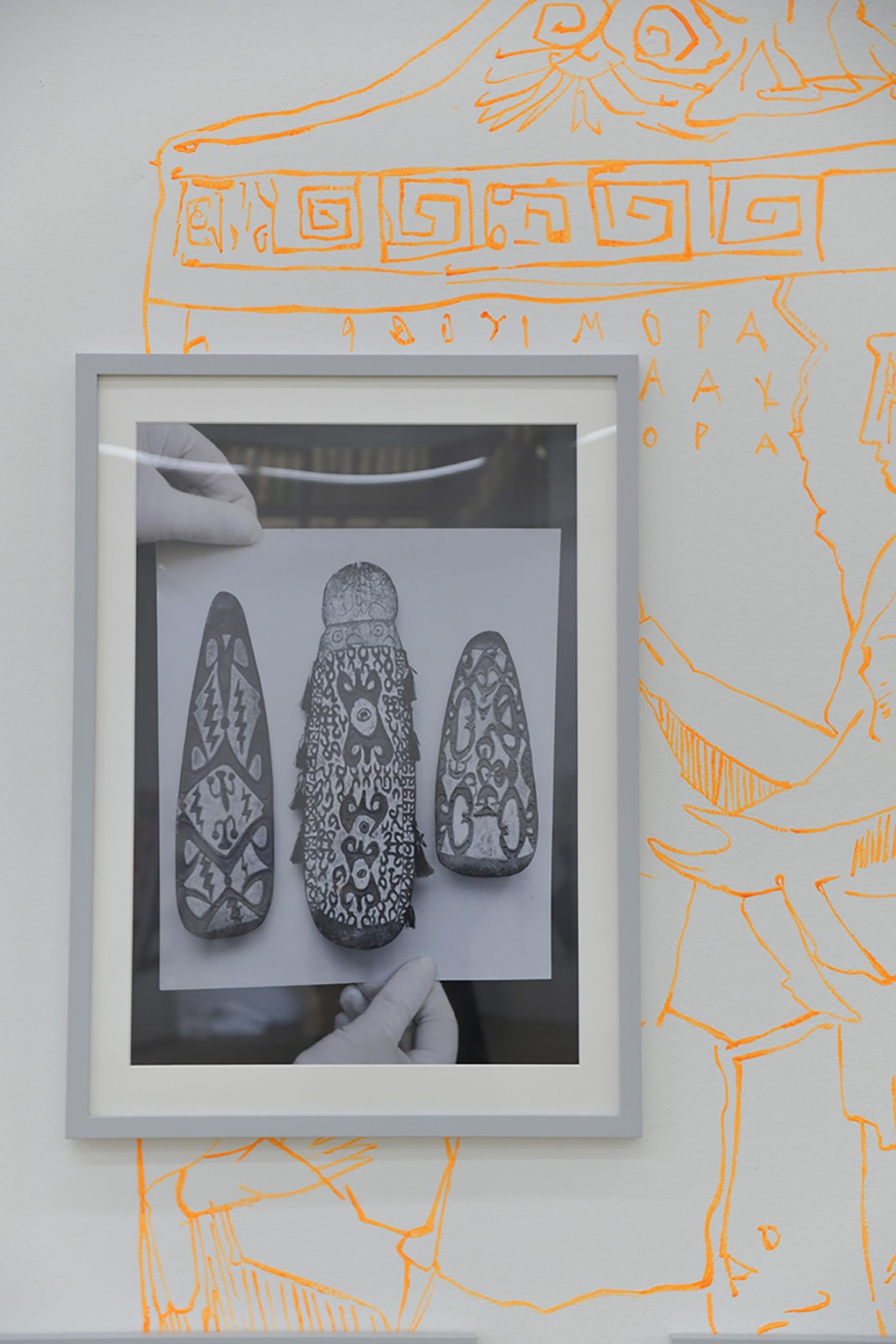 Seit ihrem Studium in den 1980er-Jahren an der damaligen Schule für Gestaltung in Basel ist Cécile Hummel (*1962, lebt und arbeitet in Basel) immer wieder unterwegs, auf langen und kurzen Reisen. Ihr zentrales künstlerisches Medium ist die Zeichnung. Daneben arbeitet sie mit Fotografie, Video und mit manuellen und digitalen druckgrafischen Techniken. Sie hat in Rom, in Paris und in Kairo gelebt sowie im Libanon, in Marokko und auf Sizilien fotografiert und gezeichnet. Die Bewegung und das Unterwegssein sind zentral für ihre künstlerische Arbeit, die sich nährt aus immer wieder neuen Blicken auf ihr noch unvertraute Terrains. In ihrer künstlerischen Langzeitrecherche Memphis beschäftigt sich Cécile Hummel beispielsweise mit dem Mittelmeerraum, mit den dort stattfindenden gegenseitigen kulturellen Einflussnahmen, mit den Bewegungen zwischen Orient und Okzident. In diesem Sinn ist das Moment der Bewegung nicht nur ihrer Arbeitsweise immanent, sondern interessiert sie auch in thematischer Hinsicht in ihren Recherchen und künstlerischen Arbeiten. Die an der Werkschau präsentierte Arbeit Distant Glance (2017/19) schliesst daran an. Cécile Hummel zeigt eine Auslegeordnung von Fotografien und Zeichnungen. Diese entstanden im Rahmen ihrer Recherche über zwei Ausstellungen mit Kunst und Kulturobjekten aus Papua-Neuguinea und Benin in der Kunsthalle Basel und im MoMA in New York 1962 beziehungsweise 1935. Die Künstlerin interessiert sich für diese von der einen in die andere Kultur «bewegten» Objekte und fragt, inwieweit die Masken oder Skulpturen den neuen Kontext, in den sie eintreten, zu verändern mögen. Zugleich haftet der Arbeit im Kontext der laufenden Debatten um die Restitution ebensolcher Kulturgüter eine überaus aktuelle Brisanz an.