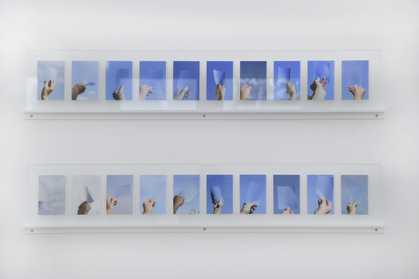 Die Auseinandersetzung mit der Natur, die Darstellung von Landschaften, die Sehnsucht nach einer wie auch immer gearteten «Natur» in einer urbanen Welt, aber auch Ressourcenknappheit, Klimawandel und Überbevölkerung sind wiederkehrende Themen, mit denen sich Esther van der Bie (*1962, lebt und arbeitet in Biel) in ihren künstlerischen Arbeiten auseinandersetzt. So hat sie sich beispielsweise in der Werkserie Nach Hiroshige(2015/16) mit der Abbildung japanischer Landschaft auseinandergesetzt und traditionellen Ukiyo-e-Drucken aus dem 18. Jahrhundert eigene digitale Fotografien gegenübergestellt. Die Künstlerin arbeitet mit Fotografie und Video und schafft mitunter raumgreifende installative Arbeiten. Anlässlich der Werkschau zeigt sie jeweils zwei fotografische Arbeiten aus zwei mehrteiligen Werkkomplexen. Handlungen der Sehnsucht: Die Vermessung des Himmels (2019) spielt durchaus augenzwinkernd mit dem menschlichen Wunsch, die Natur nach so rationalen wie standardisierten Normen erfassen und vermessen zu wollen: Farbkarten aus dem NCS-System – das in den 1930er-Jahren entwickelte Natural Colour System (NCS) soll basierend auf vier Grundfarben das menschliche Farbempfinden wiedergeben – werden vor den Himmel gehalten, in der (vergeblichen) Hoffnung, die Farbe des Himmels zu klassifizieren. Deutschland. Eine Sommerreise (2018) – der Titel weckt Assoziationen mit Heinrich Heines satirischem Versepos Deutschland. Ein Wintermärchen (1844) – zeigt den Blick auf Asphaltstrassen. Die an den Strassen nachträglich vorgenommenen Ausbesserungen bilden eine Art Muster, das vielleicht an einen Teppich erinnert, derweil wir bei Jura. Im Sommer(2019) an gestische Gemälde denken könnten.