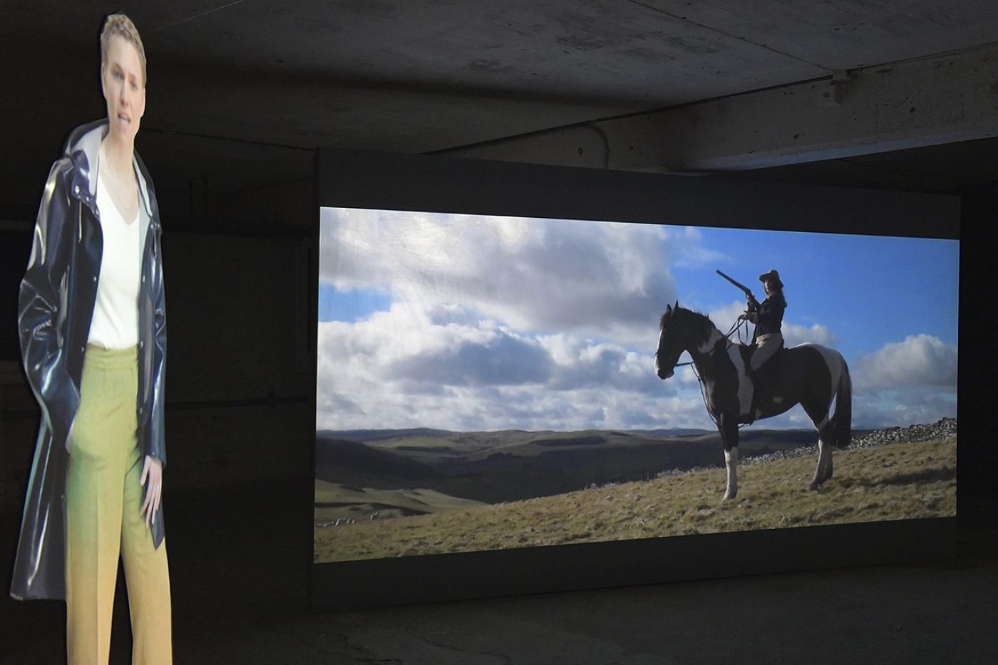 Das fabulierende und spekulierende Erzählen von Geschichten ist zentral in der Arbeit von Rhona Mühlebach (*1990, lebt und arbeitet Glasgow/Dettighofen). Mit einem Bachelor in Cinéma der École Cantonale d’Art in Lausanne (ECAL) hat die Künstlerin das klassische Handwerk des Filmemachens erlernt. Angezogen von einer freieren, experimentelleren Arbeitsweise, in der Video, Audio und Text zusammenkommen, hat sie danach an der Glasgow School of Art bildende Kunst studiert. Filmisch inszenierte Geschichten bergen für die Künstlerin das Potenzial, die Welt zu entdecken, vielleicht sogar zu verstehen. Mit einem grossen Interesse für die alltäglichen Beziehungen zwischen Menschen, Tieren, Landschaften, Orten und Objekten verfolgt Rhona Mühlebach eine künstlerisch-recherchierende Arbeitsweise und spielt mit tradierten Erzählformen. Sie vermengt fiktionale und reale Handlungen zu eigentlichen Fabulationen, in denen Fakten plötzlich imaginär und Wahrheiten fiktiv erscheinen und die uns dadurch neue Blicke auf die Welt eröffnen. In Five Sisters (2017) agieren fünf Hügel in der schottischen Landschaft als Protagonistinnen; in Loch Long (2019) erforscht die Künstlerin einen Meeresarm in Westschottland und erzählt in einer Mischung von Dokumentation und Fiktion die Geschichte der Bucht, des Wassers und seiner Bewohner*innen. Anlässlich der Werkschau zeigt sie The River, The Horse & The Woman (2019). Die filmische und installative Arbeit führt uns in die abgelegene schottische Gegend The Borders, die auch der Wilde Westen Schottlands genannt wird und wo so viele Pferde wie Einwohner*innen leben. Mit ausschliesslich weiblichen Protagonistinnen erzählt Rhona Mühlebach von den Beziehungen zwischen den Frauen und ihren Pferden.
