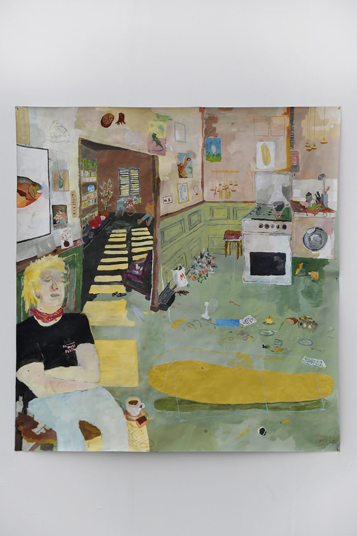 Ray Hegelbach (*1983, lebt und arbeitet in Oslo und Zürich) hat an der Hochschule Luzern und an der National Academy of Arts in Oslo bildende Kunst studiert. In seiner künstlerischen Arbeit interessiert er sich seit Langem für die Bedeutungen von privaten Innenräumen und Routine im Alltag. Im Kontext einer allgegenwärtigen gesellschaftlichen Tendenz zur effizienten, selbstoptimierten Organisation der arbeitsfreien Zeit und angesichts der omnipräsenten Inszenierung vermeintlich privater Räume auf Instagram und anderen Kanälen spürt der Künstler insbesondere der Funktion von sogenannten ‹Heimtextilien› nach. Er entwickelt ganze Environments, die der körperlichen und seelischen Entspannung dienen sollen, oder erforscht die Ikonografie von Dekorationsmotiven und -materialien. An der Werkschau zeigt er eine ganz neue, im Belgrader Atelierstipendium der Kulturstiftung entstandene Bildserie, in der er seine Vorliebe für textile Materialien und die ihn seit jeher umtreibende Auseinandersetzung mit Malerei zusammenführt. Er bemalt Leinwände – oft im Format klassischer Tafelbilder – mit Motiven aus der Alltagskultur und bespannt die Gemälde mit Textilien wie Häkelarbeiten, Spitzen oder Tüll. Ray Hegelbach vermengt Stoffe und Motive, die sich sowohl aus tradiertem Handwerk als auch aus der Popkultur speisen und sich auch heute noch in den Wohnzimmern in Frauenfeld, Oslo oder Belgrad finden. Bei uns rufen sie wohl nicht selten gleichzeitig wohlige Erinnerungen und ein leises Schaudern hervor.