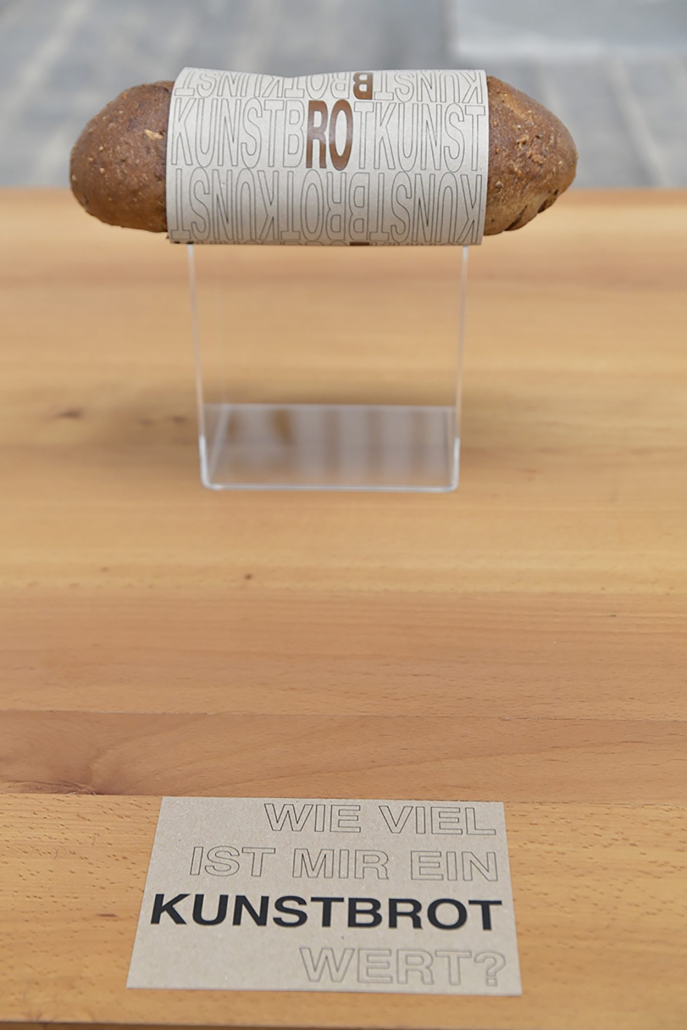 Max Bottini (*1956, lebt und arbeitet in Uesslingen) verfolgt mit seiner Kunst ein spartenübergreifendes, partizipatives und prozesshaftes Arbeiten. Er trägt seine Projekte bewusst in den öffentlichen Raum und schafft Interventionen ausserhalb der musealen Ausstellungsräume. Er will die Kunstbetrachter*innen als aktiv handelnde Menschen einbinden und dabei alle Wahrnehmungsebenen ansprechen. Für das Projekt erntema(h)l! beispielsweise, das er 2015/16 im Stadtpark vor dem Kunstmuseum Solothurn realisierte, thematisierte er die Nahrungsmittelproduktion und den Konsumkreislauf in der Gegenwart. Gemeinsam mit 100 Beteiligten hat er 40 Sorten Gemüse und Kräuter sowie zwölf Junghähne aufgezogen, die zur ‹Erntezeit› in einer grossen öffentlichen Kochaktion zu Speisen verarbeitet wurden. Anlässlich der Werkschau 2019 fragt uns Max Bottini «Wie viel ist dir ein Kunstbrot wert?» und thematisiert damit die Mechanismen der Werteproduktion im Kunstsystem. Hierfür hat er kleine künstlerische Arbeiten der beteiligten Werkschau-Künstler*innen in Roggenbrote eingebacken, die er an einem Abend während der Ausstellung zu einem Preis ab 20 Franken verkauft. Nun liegt es an uns: Wie viel wollen wir für ein mit Kunst angereichertes Brot bezahlen – unwissend, was für ein Werk darin steckt? Diese Frage führt unweigerlich zu weiteren: Wie entsteht ‹Wert› in der Kunstwelt, im Kunstmarkt? Wer hat die Deutungshoheit über ‹wertvolle› und ‹wertlose› Kunst? Sind das wir Kunstbetrachter*innen oder sind es die Museumsdirektor*innen, die Kurator*innen, die Galerist*innen? Und welche Rolle spielt überhaupt noch unser Geschmack, wenn wir herzhaft in das Roggenbrot beissen?