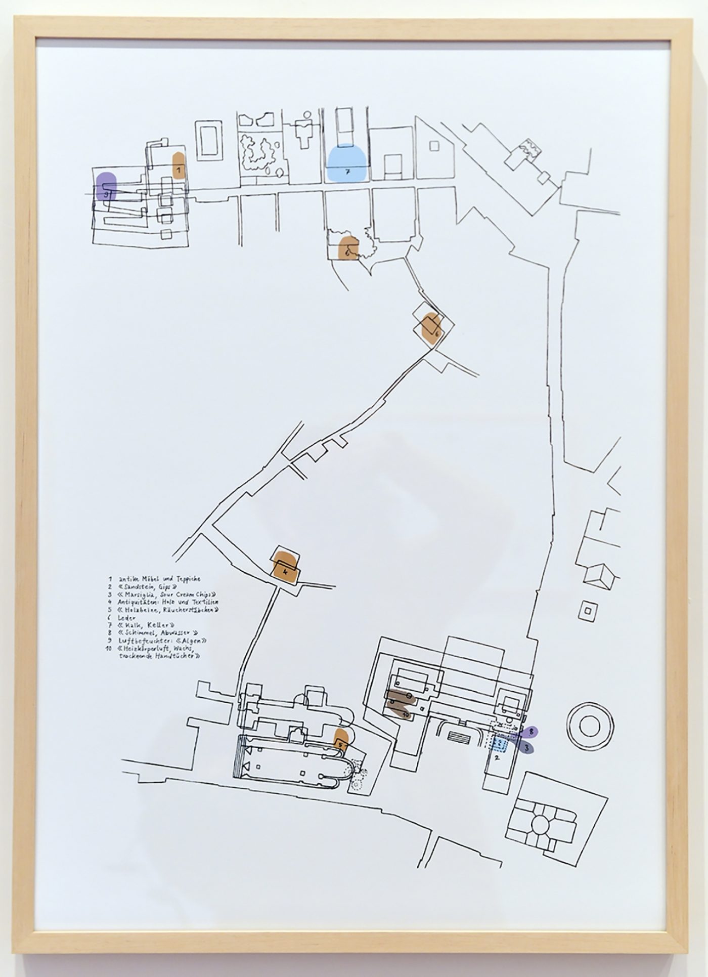 Gabriel Kuhn (*1989, lebt und arbeitet in Luzern) hat an der Hochschule Luzern einen Bachelor in Illustration und einen Master in Art in Public Spheres absolviert. Er ist ein genauer Beobachter seiner Umgebung: Er erwandert städtische und ländliche Räume, fotografiert mit analoger und digitaler Kamera die spiegelnden Fassaden von Hochhäusern oder die Sonnenschirme verlassener Strände. Dabei interessiert sich der Künstler jedoch nicht nur für die visuellen und demnach mit der Kamera fassbaren Dinge, sondern insbesondere auch für Gerüche, die er mit Stift und Papier festhält. Dabei entstehen kartenähnliche Zeichnungen, auf denen Gabriel Kuhn die verschiedenen Gerüche mit Farben und Formen einträgt. Diese Karten sind der Versuch, die ephemeren und oft nur zu bestimmten Tages- oder Jahreszeiten auftretenden Gerüche zu fixieren, ja sichtbar zu machen. Die an der Werkschau gezeigten Geruchskarten sind in einem Atelieraufenthalt in Genua entstanden und zeigen uns nicht nur die Windungen und Verläufe von Wegen und Wasserstrassen in der italienischen Hafenstadt, sondern eben auch deren Gerüche – vielleicht der Geruch eines Fischmarkts oder eines vorbeifahrenden Mopeds. Und sie erinnern uns daran, dass wir manchmal gut daran täten, nicht nur hinzuschauen, sondern auch hinzuhören oder eben hinzuriechen.